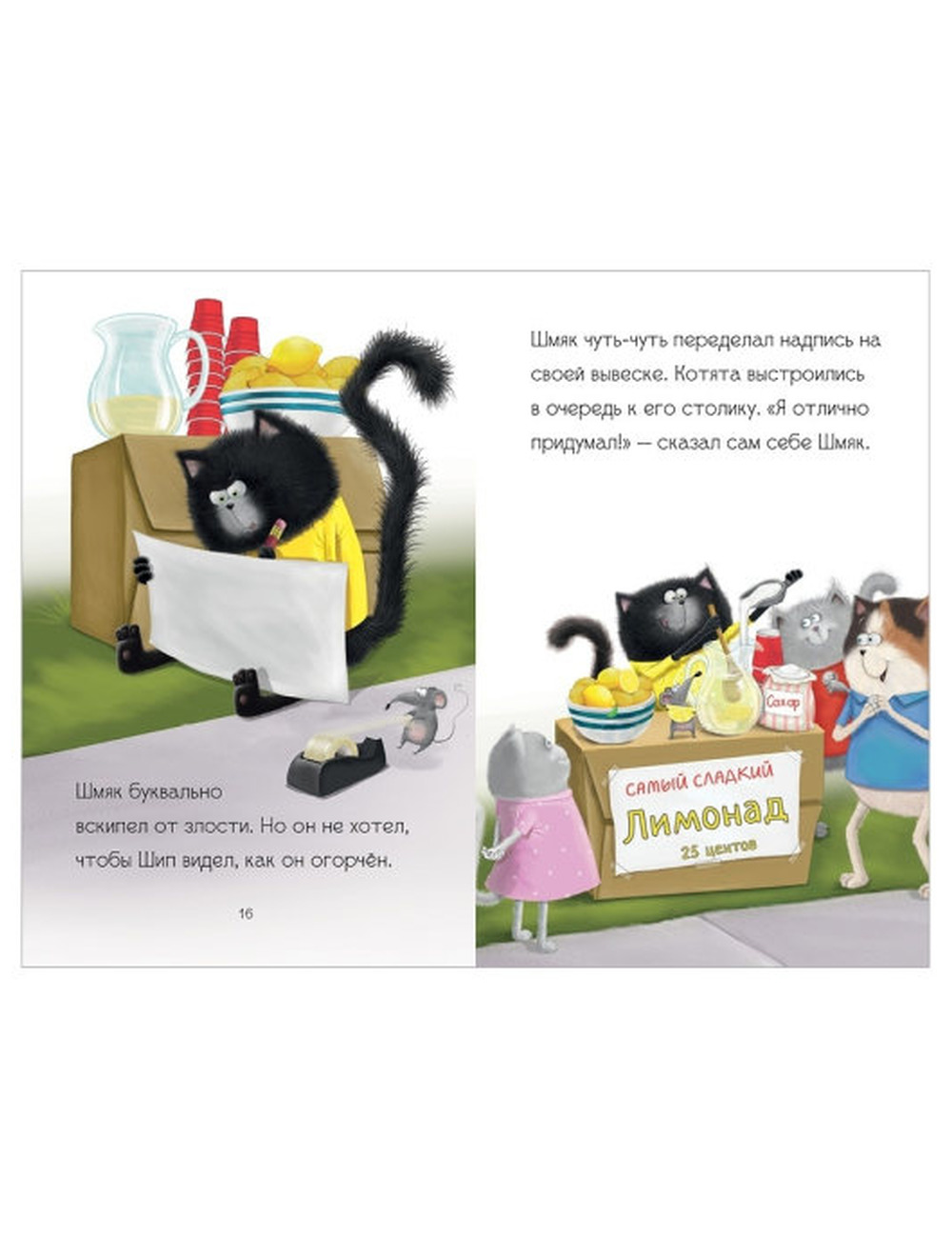 Книга "Котенок Шмяк - маленький бизнесмен" продолжение коллекции: Книжки-картинки Котёнок Шмяк. Шмяк очень хочет попасть в новый аквапарк, но для этого ему нужно заработать на половину билета. Он решил, что будет продавать лимонад! Шмяк составил план, всё продумал и подготовил. Но... что делать, если его друг Шип тоже хочет продавать лимонад? Как не потерять друга и исполнить свою заветную мечту? Шмяк - один из самых любимых героев маленьких читателей. Мы подготовили специальные чек-листы, чтобы вы могли проверить, все ли истории у вас уже есть. Ищите их в фотографиях книги! Собери всю коллекцию!