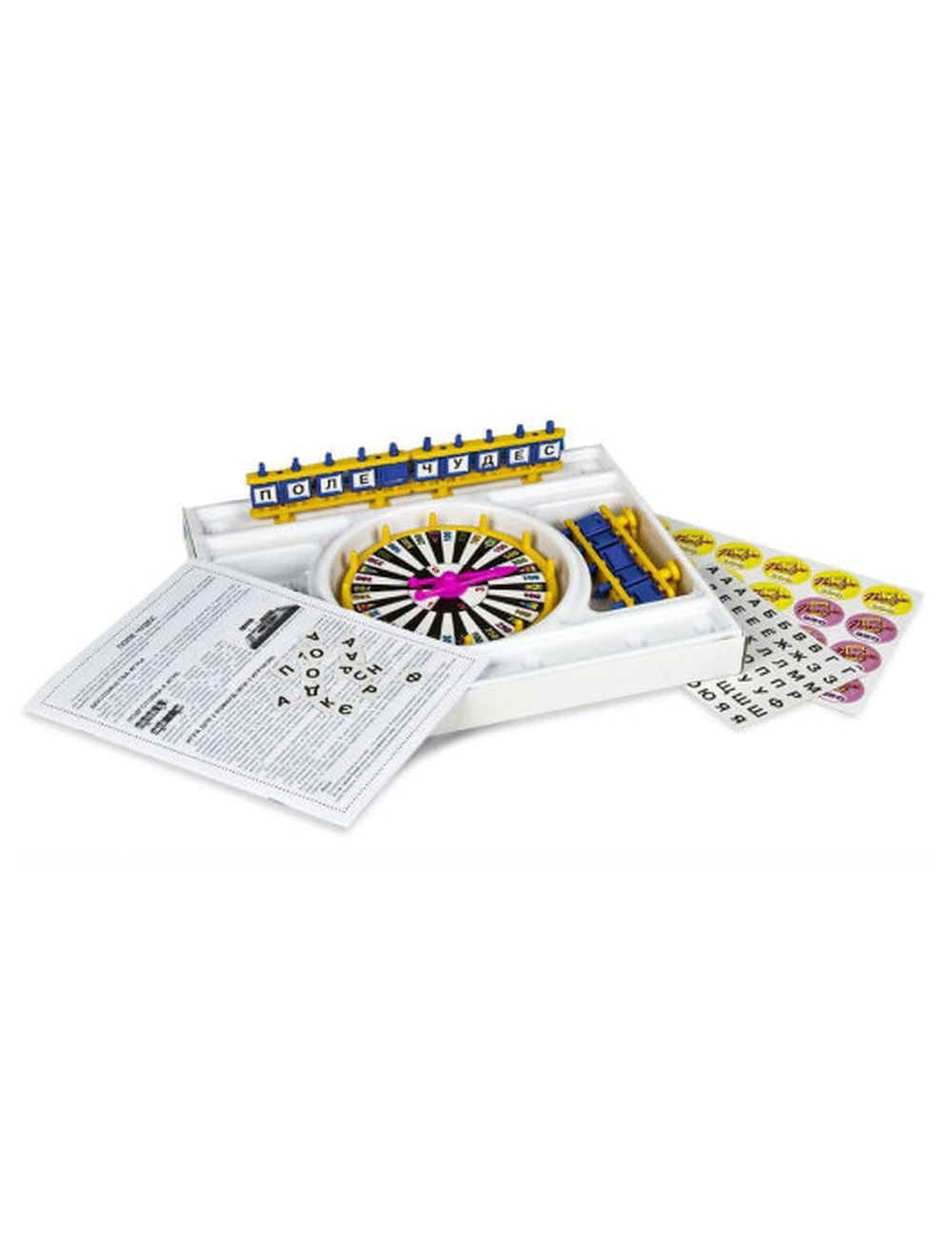 В наборе: рулетка, игровое поле, 4 табло, 28 картонных фишек, 2 комплекта карточек без букв, инструкция.