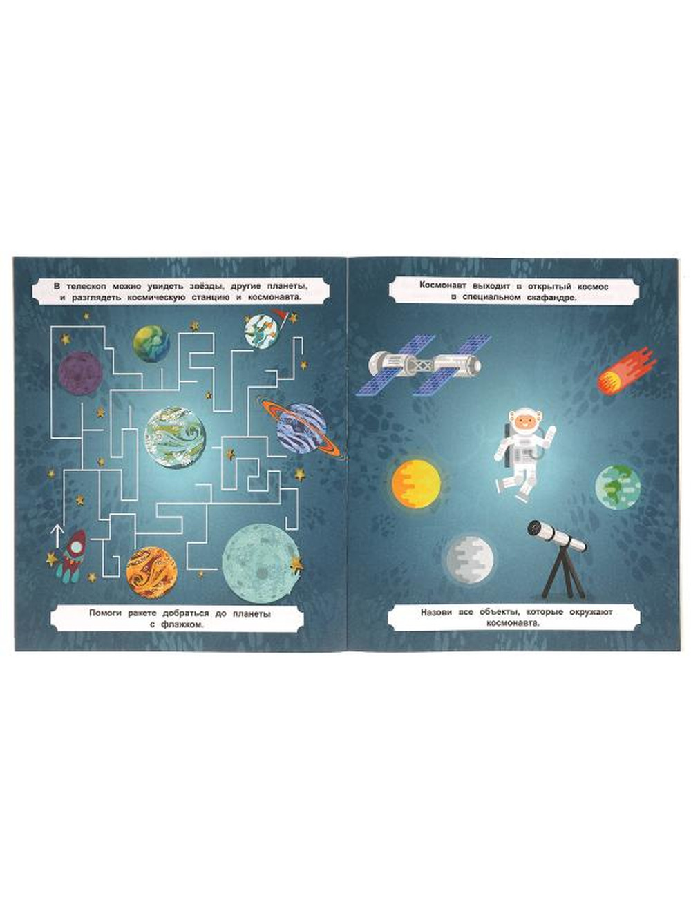 Маленький любознайка с удовольствием будет заниматься с этой красочной книгой-активити, оформленной в космической тематике. Увлекательные игры помогут ему весело и с пользой провести досуг или скоротать время в дороге.