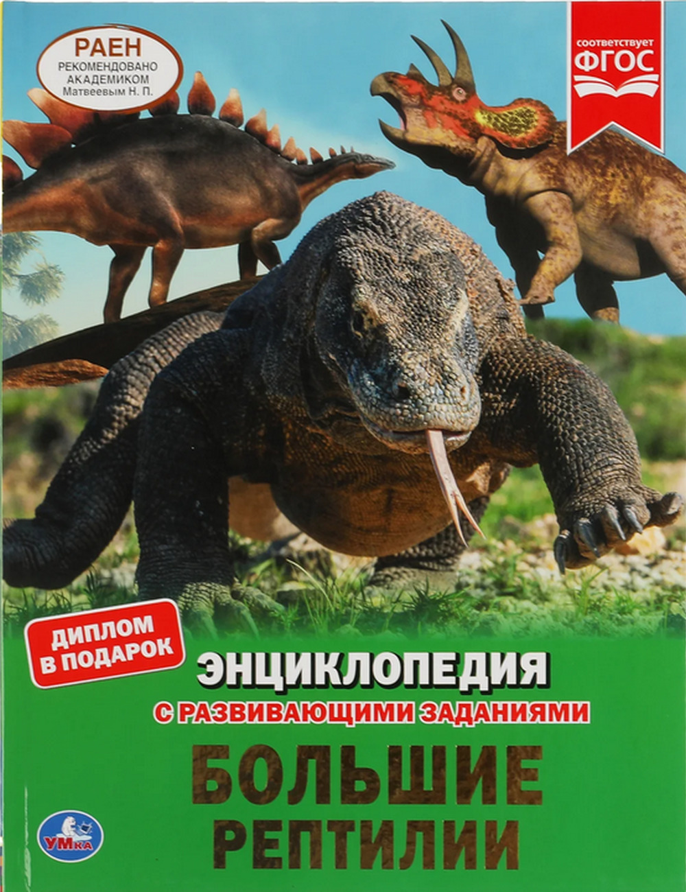 Энциклопедия с развивающими заданиями «Большие рептилии» станет отличным подарком для маленьких любознаек: