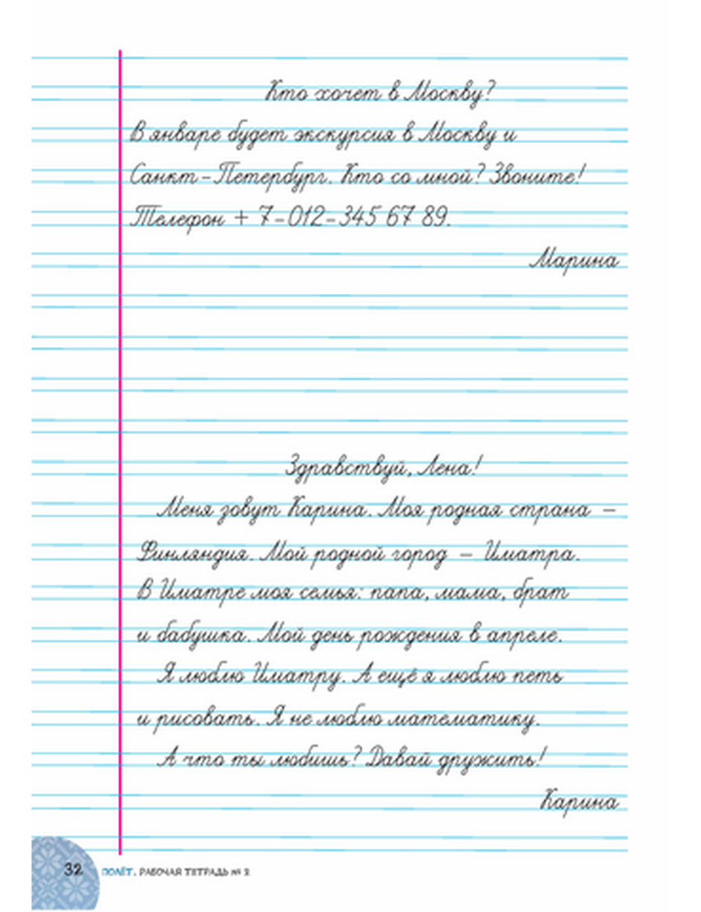 Первая из трёх частей УМК предназначена для учащихся 8–9 лет, начинающих изучать русский язык как иностранный. Использует приёмы CLIL и естественный порядок освоения языка. Рассчитана на 60–70 часов обучения в классе и достижение коммуникативной компетенции на уровне пред-А1.