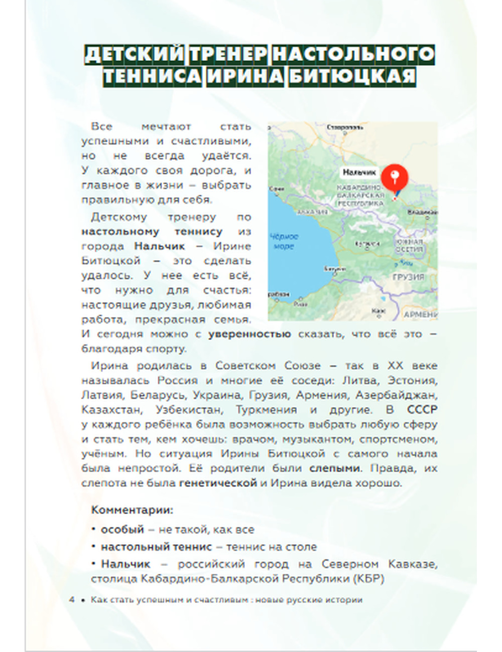 Серия разработана для изучающих русский язык как второй / иностранный на уровнях А2 и В1. Её героями стали представители самых разных профессий, живущие в России XXI века. Серия предназначена для экстенсивного ознакомительного домашнего чтения. Каждый выпуск посвящён одной из профессиональных сфер и содержит адаптированные тексты на документальной основе с иллюстрациями, страноведческими комментариями и вопросами на понимание общего содержания.