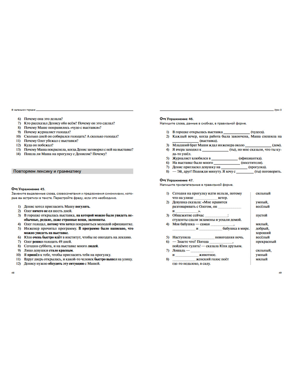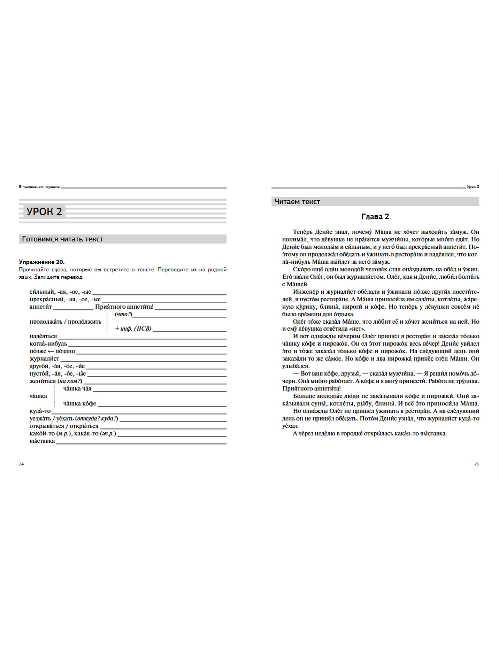 Учебное пособие адресовано иностранцам, освоившим уровень ТБУ (А2) и желающим подготовиться к сдаче сертификационного экзамена первого уровня ТРКИ-1 (В1). В пособии представлена система упражнений, позволяющих систематизировать изученный ранее материал и активизировать навыки устной речи, а также освещены грамматические темы, представляющие особую трудность на этом этапе обучения. Пособие состоит из пяти глав, каждая из которых включает в себя словарь к тексту, текст, упражнения на повторение лексики и грамматики, а также на обсуждение прочитанного. Тексты связаны единым сюжетом и представляют собой переработку новеллы О. Генри. Пособие может быть использовано как для изучения в группе под руководством преподавателя, так и для самостоятельной работы.