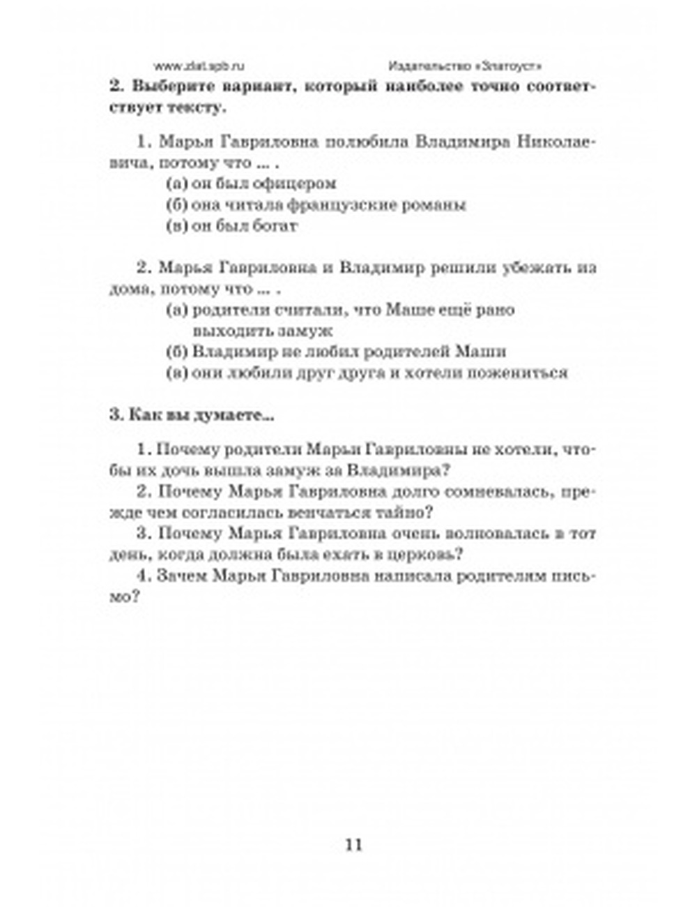 Книга из серии "Библиотека Златоуста". Серия включает адаптированные тексты для 5 уровней владения русским языком: произведения классиков русской литературы, современных писателей, публицистов, журналистов, а также киносценарии. Уровни ориентируются на лексические минимумы, разработанные для Российской государственной системы тестирования по русскому языку. Каждый выпуск снабжён вопросами, заданиями и словарём, в который вошли слова, выходящие за пределы минимума. В книгу включены три адаптированные романтические повести по мотивам «Повестей Белкина» А. С. Пушкина (1500 слов с опорой на лексический минимум первого сертификационного уровня).
