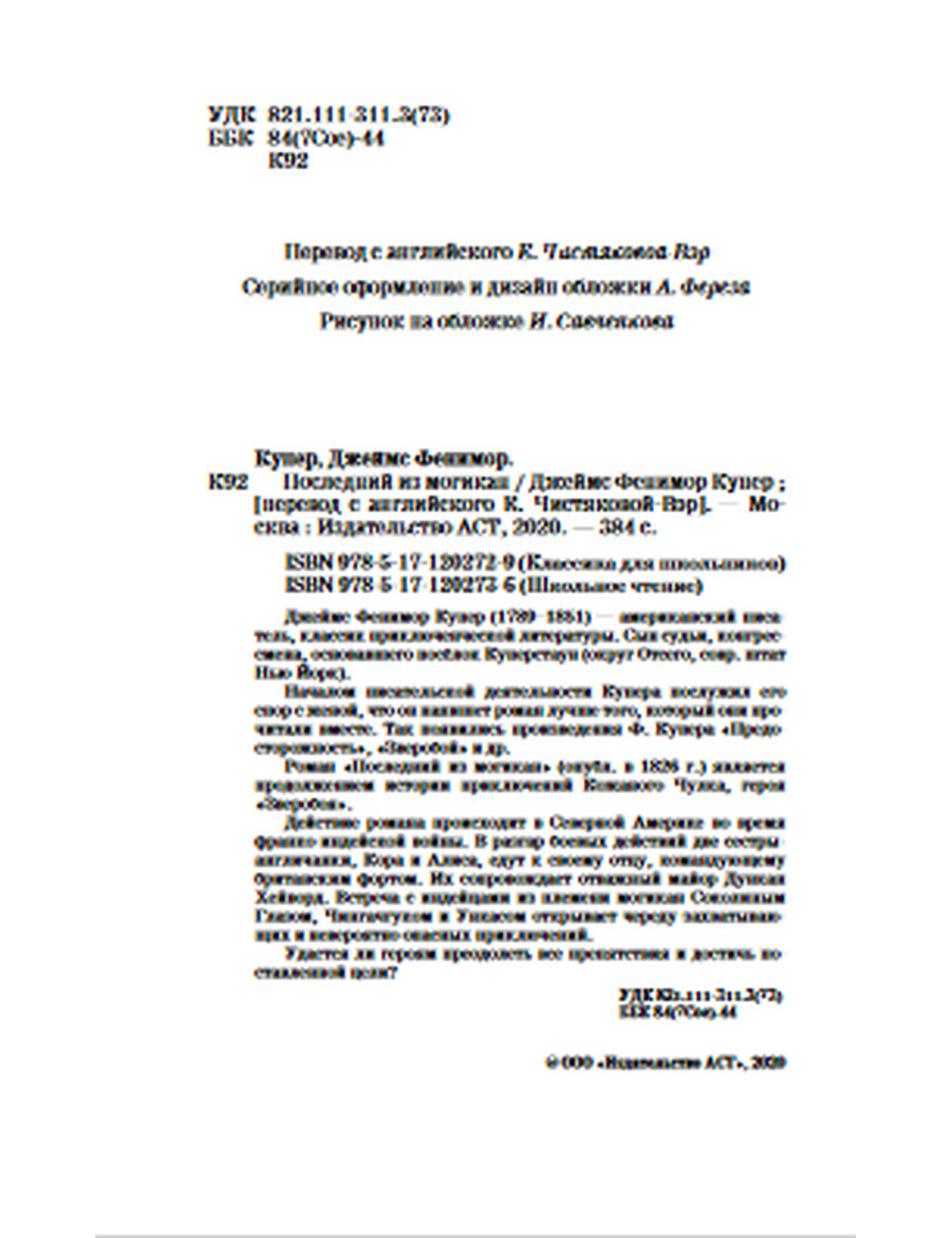 Роман «Последний из могикан» (опубл. в 1826 г.) является продолжением истории приключений Кожаного Чулка, героя «Зверобоя».